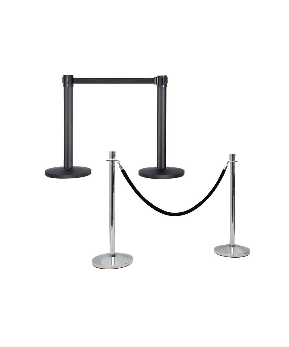 Professionele afzetpaal matzwart of verchroomd RVS – 2,30 m uittrekbare riem