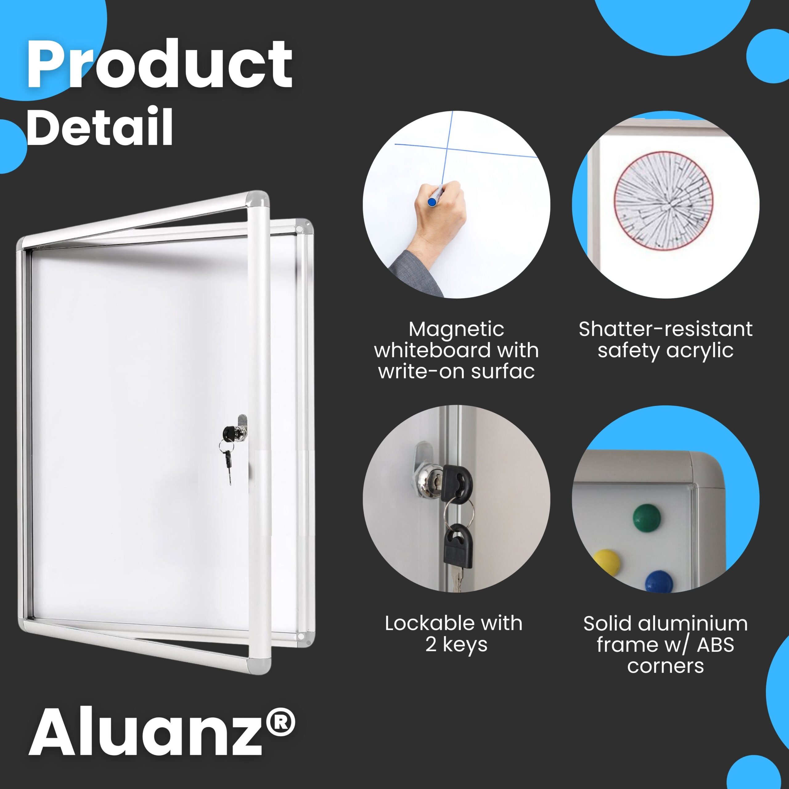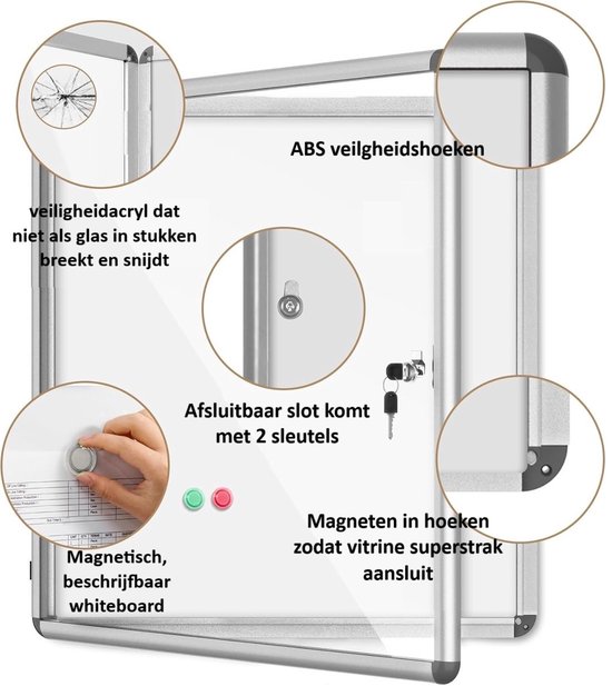 Professionele, afsluitbare postervitrine met magnetisch whiteboard-oppervlak. Ideaal voor scholen, kantoren, zorginstellingen, verenigingen en bedrijven die informatie veilig én overzichtelijk willen presenteren.