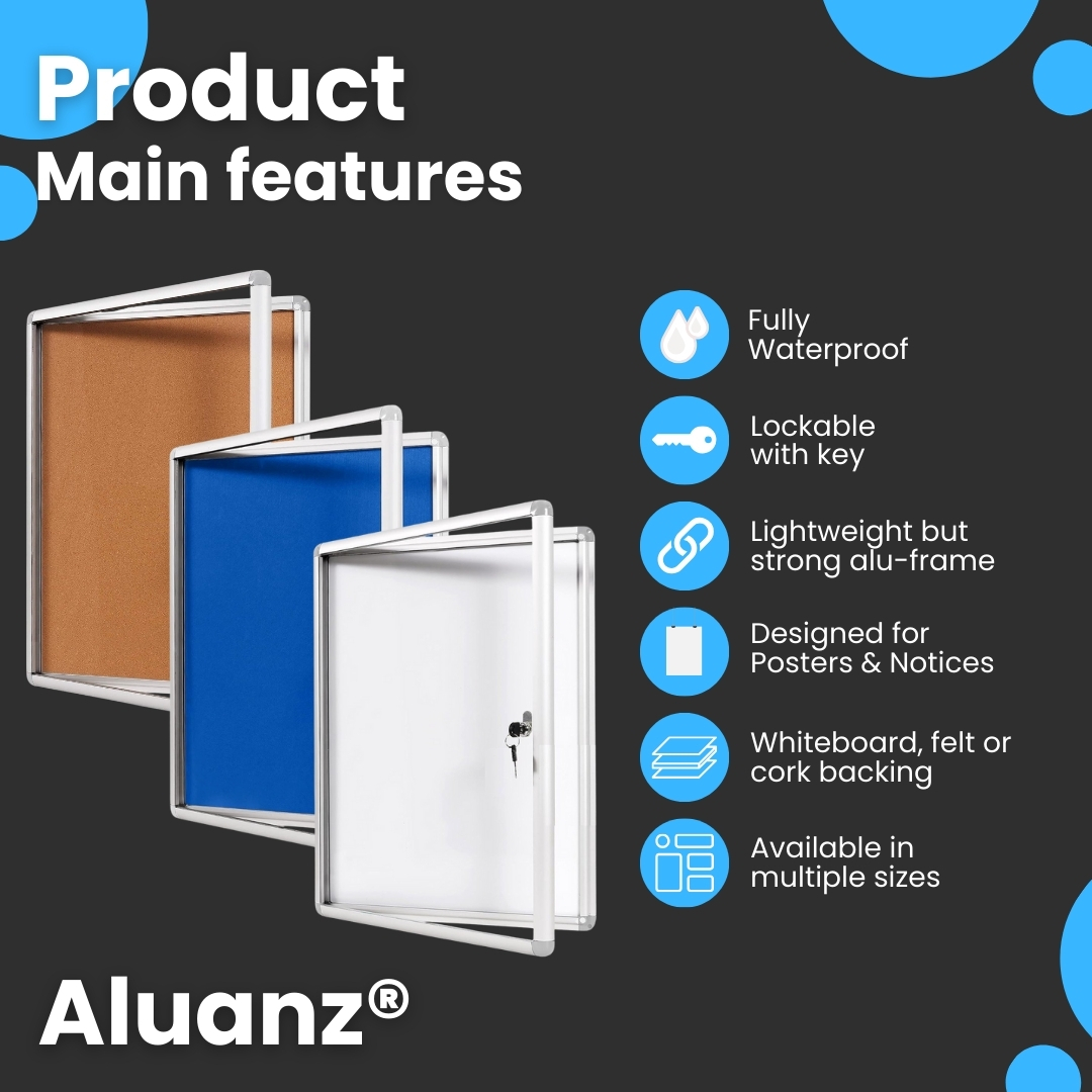 Professionele, afsluitbare postervitrine met hoogwaardige, vilten achterwand. Ideaal voor scholen, kantoren, zorginstellingen, verenigingen en bedrijven die informatie veilig én overzichtelijk willen presenteren.