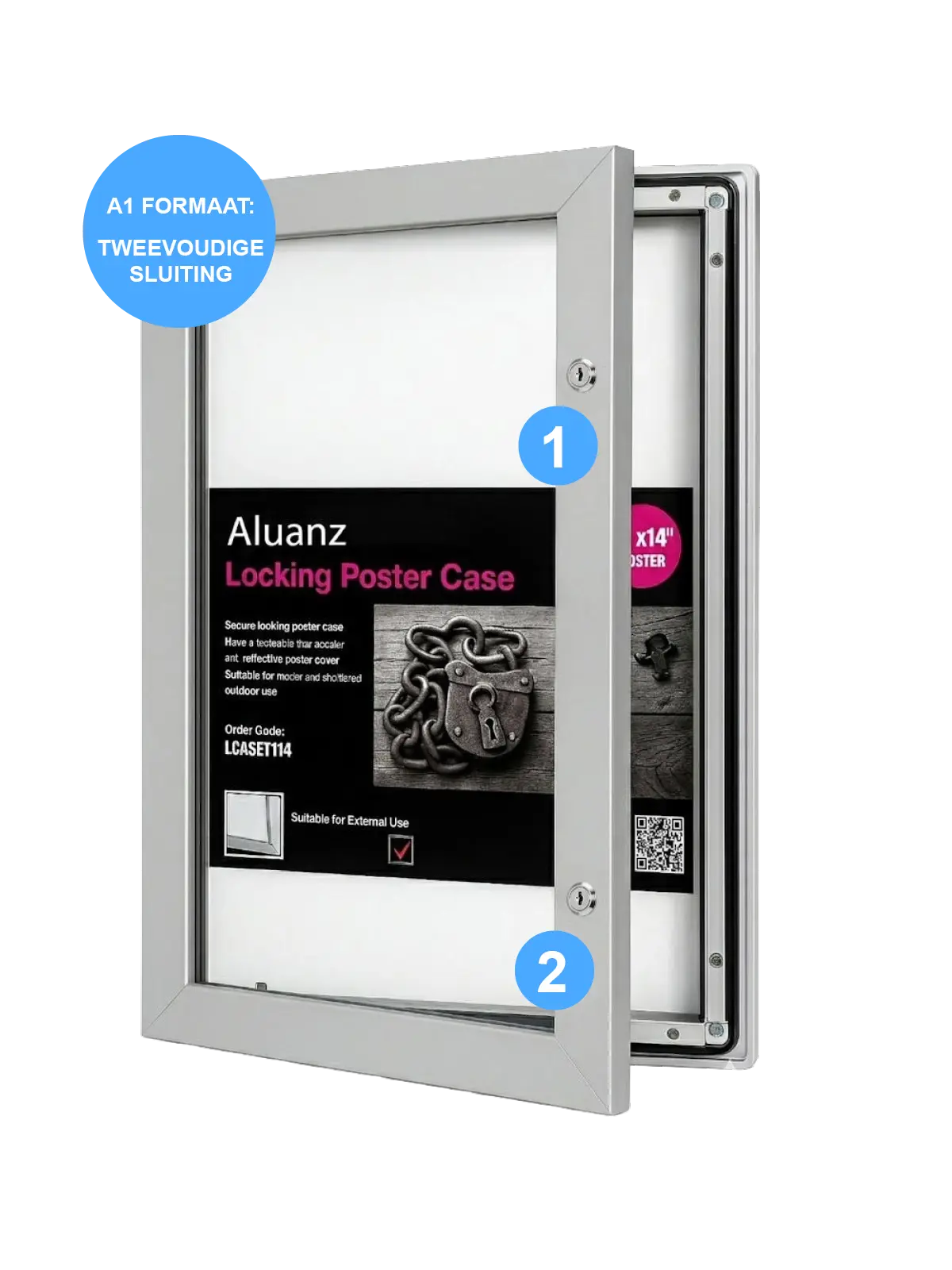 Deze robuuste aluminium postervitrine van het merk Aluanz beschermt uw posters tegen weersinvloeden, vuil en ongewenste verwijdering.